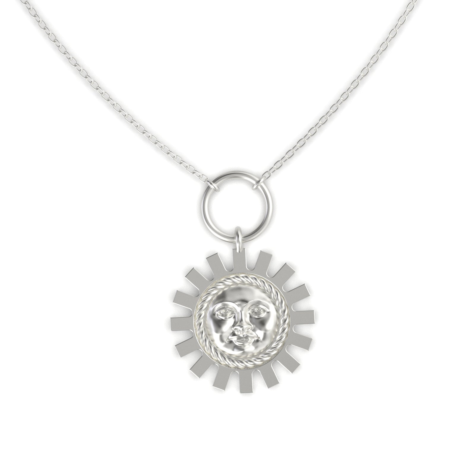 Shine with confidence and symbolism. Our handcrafted silver sun pendant captures duality and radiance. It features a beautifully sculpted face surrounded by sunray spokes and a rope-like border. Made from high-polish sterling silver, this piece is bold and timeless—a perfect balance of light and energy.
