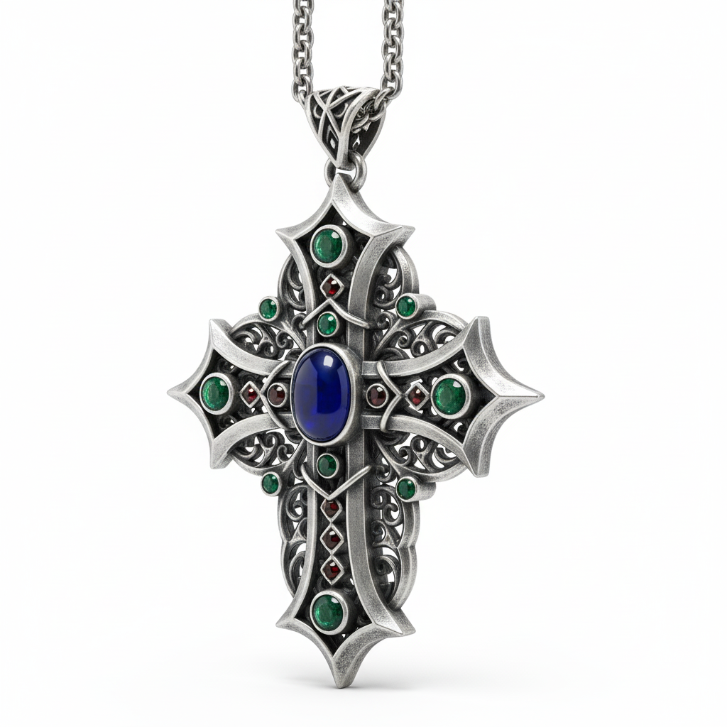 Inspired by the breathtaking majesty of Gothic architecture, every line and curve of this cross echoes the grandeur of stone and stained glass. The name, Aethelgard, is a whisper from Old English meaning "noble protector," and the pendant lives up to its legacy. It is a sentinel, a statement, and a piece of wearable art that transcends time and trend.